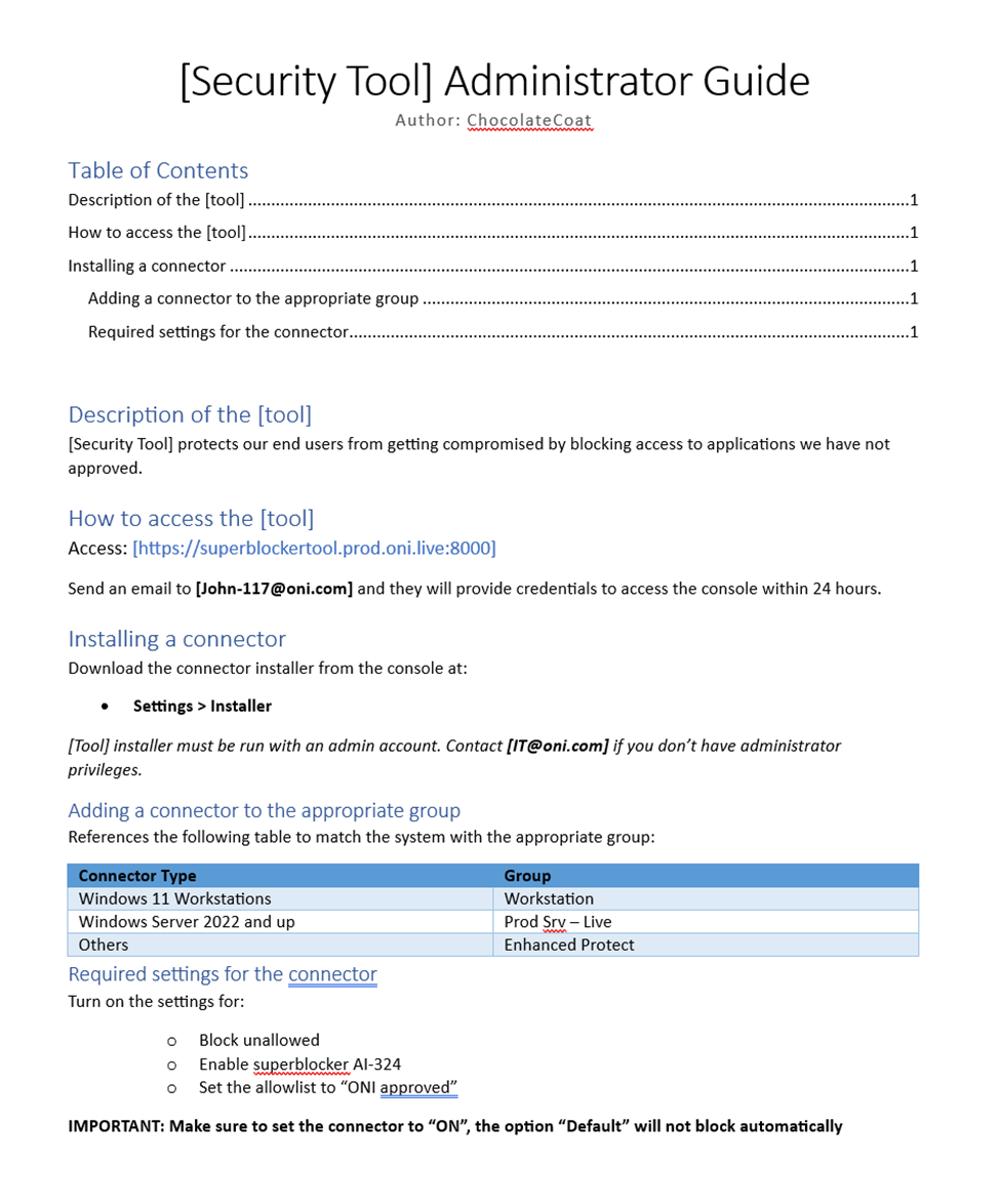 Ask around and see if there is any documentation that may need to be refreshed. Look through your internal KnowledgeBase (KB) for tips others have written in the past. Look through the vendor provided guides and determine if they can be rewritten to be more useful to your organization.